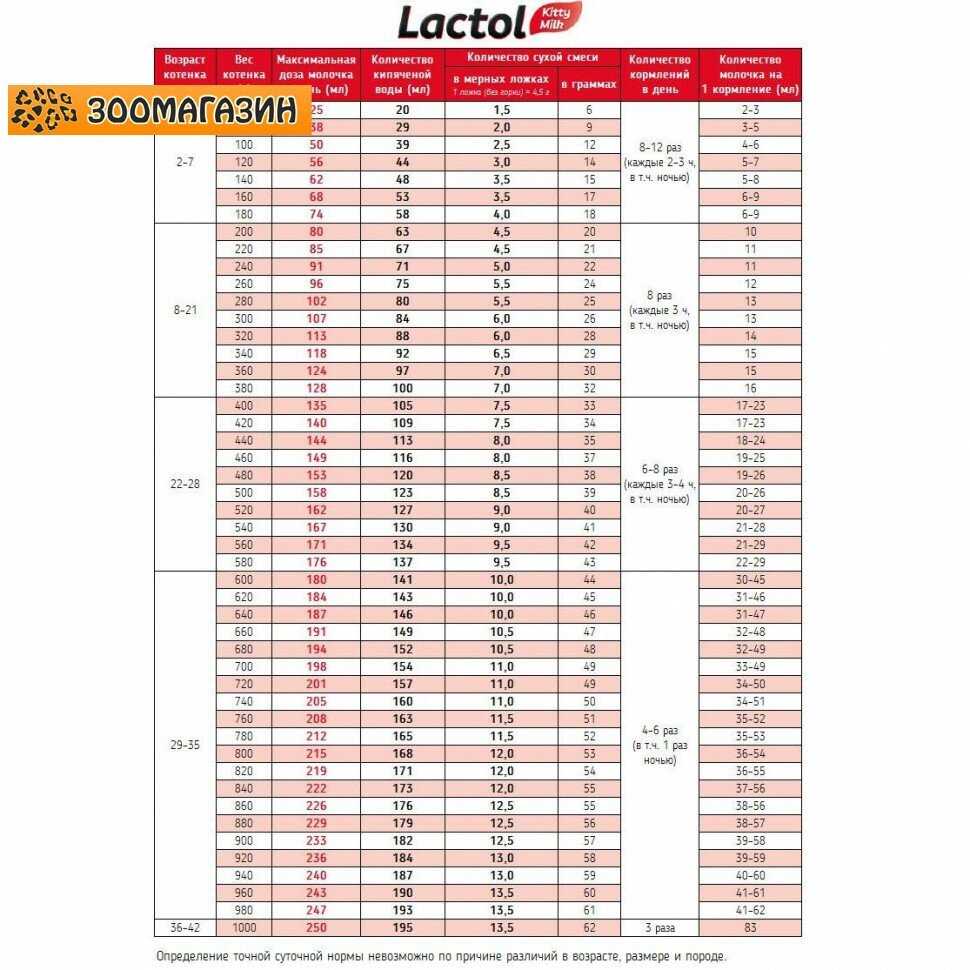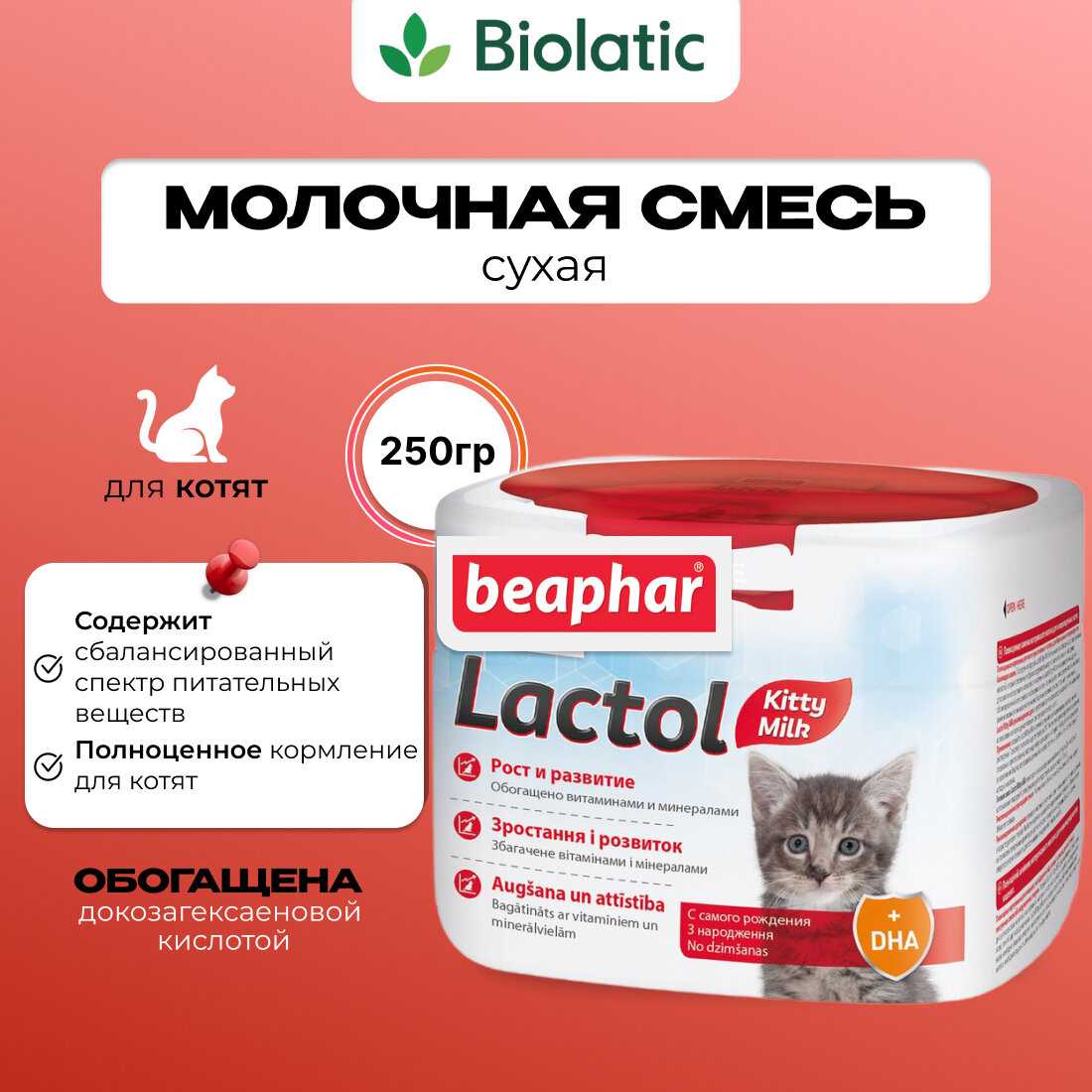 Дополнительная информация : | смешайте Lactol Kitty Milk c горячей (но не кипящей) водой и помешивайте до полного растворения, позвольте смеси остыть до температуры 38° C, настоятельно рекомендуется использование специальных приспособлений например набора для кормления Beaphar Feeding Set или шприцев для вскармливания Beaphar все предметы должны быть всегда стерильны особенно при использовании у молодых животных |