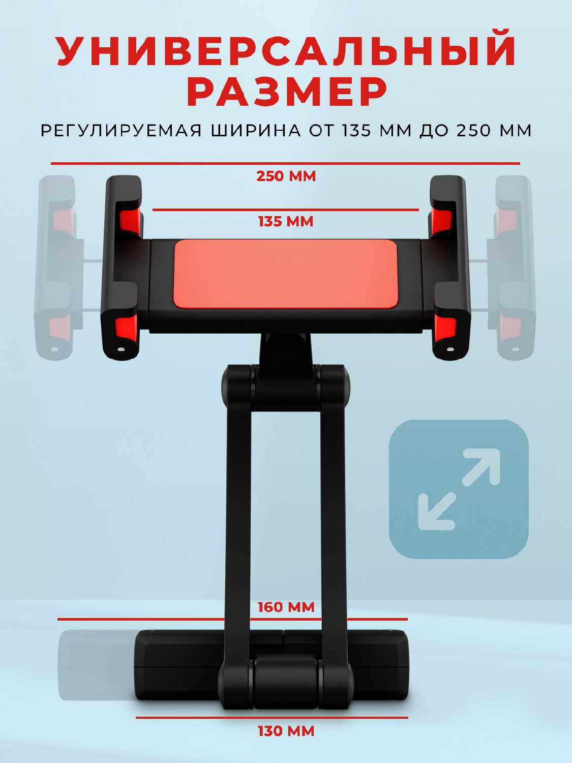 - + Купили данный держатель для планшета на подголовник сиденья авто. Подошел очень хорошо, надежно держит планшет, радует то, что имеет возможность поворачиваться в разных плоскостях, очень доволен покупкой