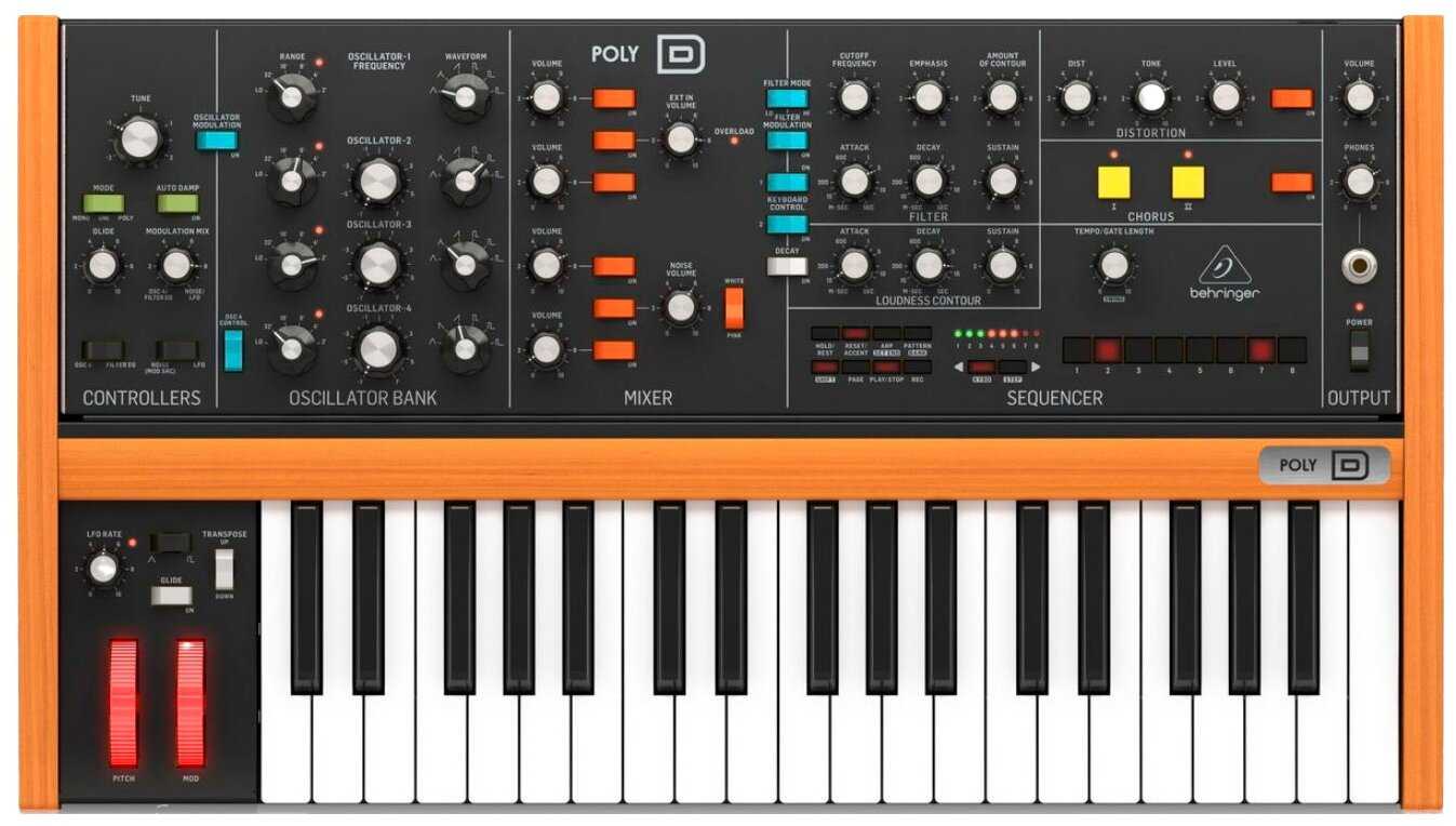 - + Жирнейший аналоговый звук, хоть ложкой ешь. 4 осциллятора в унисон бывает и много в миксе. Классный играбельный основной парафонический режим на 4 ноты, жирный юнисон-парафонический режим, классный внешний вид и удобное управление с просторной панелью, отличный встроенный хорус, есть неплохой дисторшн, линейный моно вход (балуюсь цифровым синтом на вход аналогового фильтра), арпеджиатор и секвенсор на 32 ноты и 64 ячейки памяти, балансный выход, USB-MIDI, есть послекасание у клавиш с возможностью подключения в cv матрицу модуляций, хоть и небольшую. Три основных осциллятора вместо двух (при использовании четвертого, как модулятора).