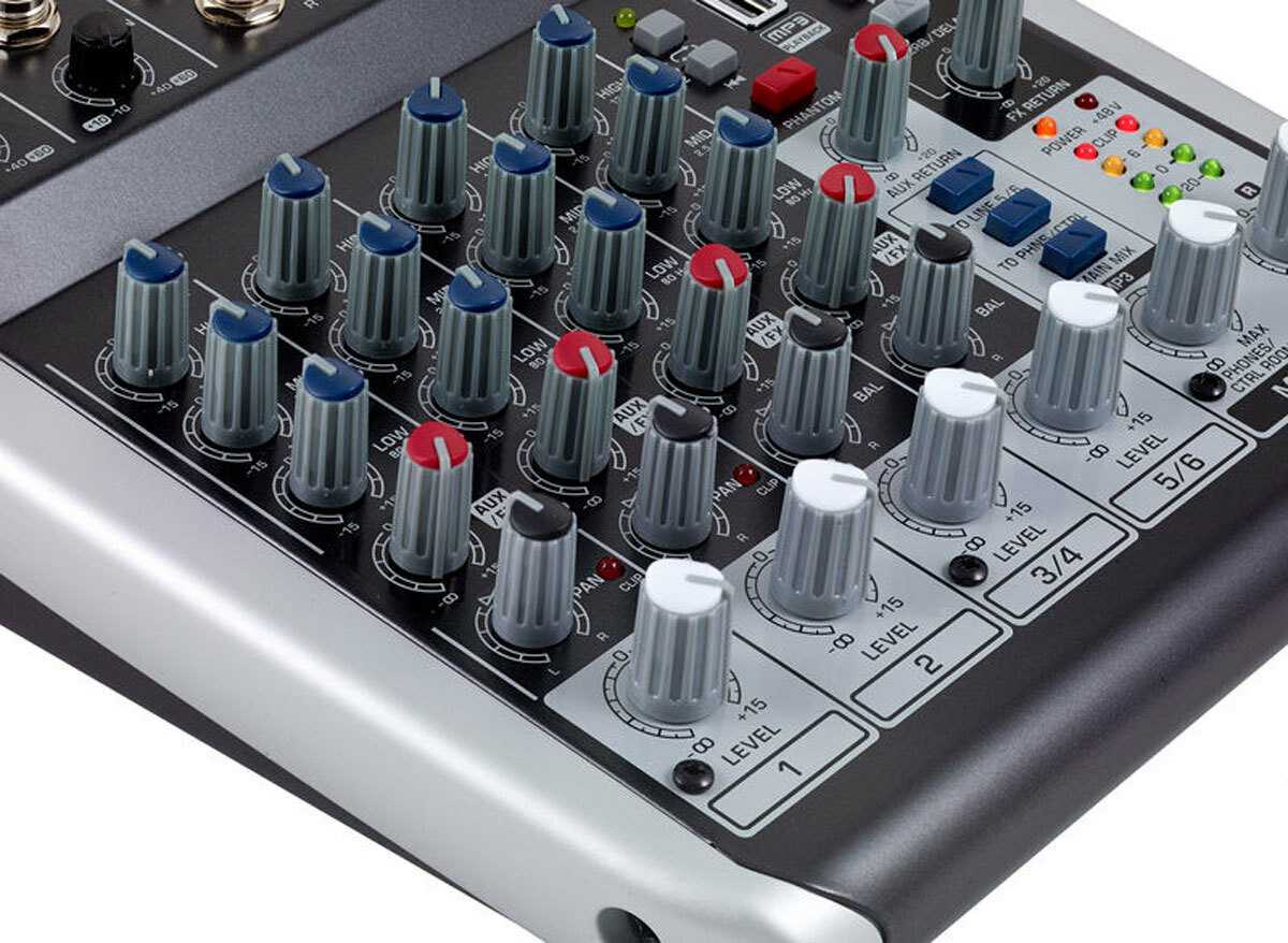 - + Отличный малыш за свои деньги. Очень компактный, при этом есть все необходимое и даже более - встроенный плеер который можно выводить на отдельный канал например для фона, с ним в принципе можно обойтись даже без ноутбука иногда. весьма неплохой звук за свои деньги. Хороший эквалайзер. Есть возможность подключиться через джек 3.5мм. Есть пара бонусом два эффекта, которыми обычно чаще и пользуются - дилей и ревер.