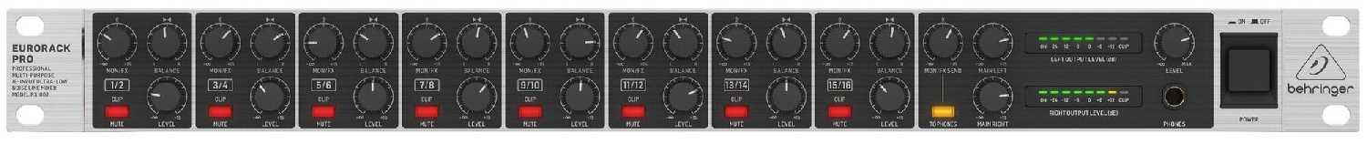 | Комплектация : | BEHRINGER RX1602 V2 - микшерный пульт, 8 моно/стерео, 16 балансных линейных входов |
