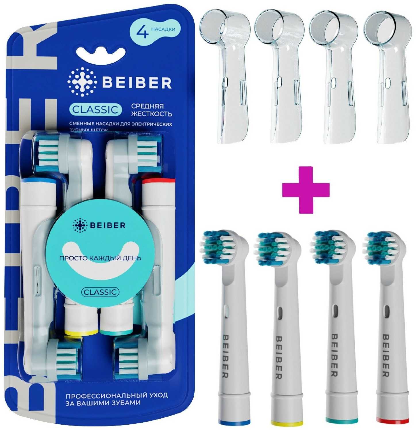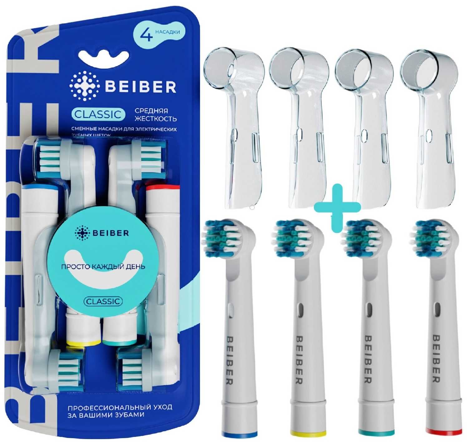 Насадки Bieber демонстрируют практически стопроцентную совместимость с линейкой электрических щеток Oral-B, включая модели Braun. Крепление осуществляется плотно без люфтов, хотя некоторые пользователи отмечают необходимость приложения усилий при установке. Конструктивной особенностью является увеличенный диаметр чистящей головки на 15-20% по сравнению с оригиналом и более редкое расположение пучков щетины. Эта особенность вызывает полярные мнения: одни ценят расширенную зону охвата, другие указывают на сложности при чистке задних зубов и узких межзубных промежутков. В комплекте присутствуют гигиеничные защитные колпачки – неожиданно полезный аксессуар для путешествий.