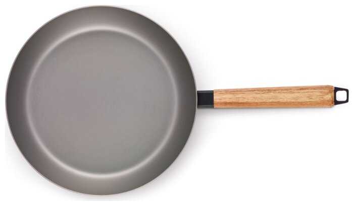 Крупная, удобная универсальная бельгийская сковрода. Очень быстро разогревается, для жарки требует совсем не много масла, так как покрытие не пригорает. Ручка изготовлена их качественного дерева, ее приятно держать в руке, особенно с учетом того, что она не нагревается.