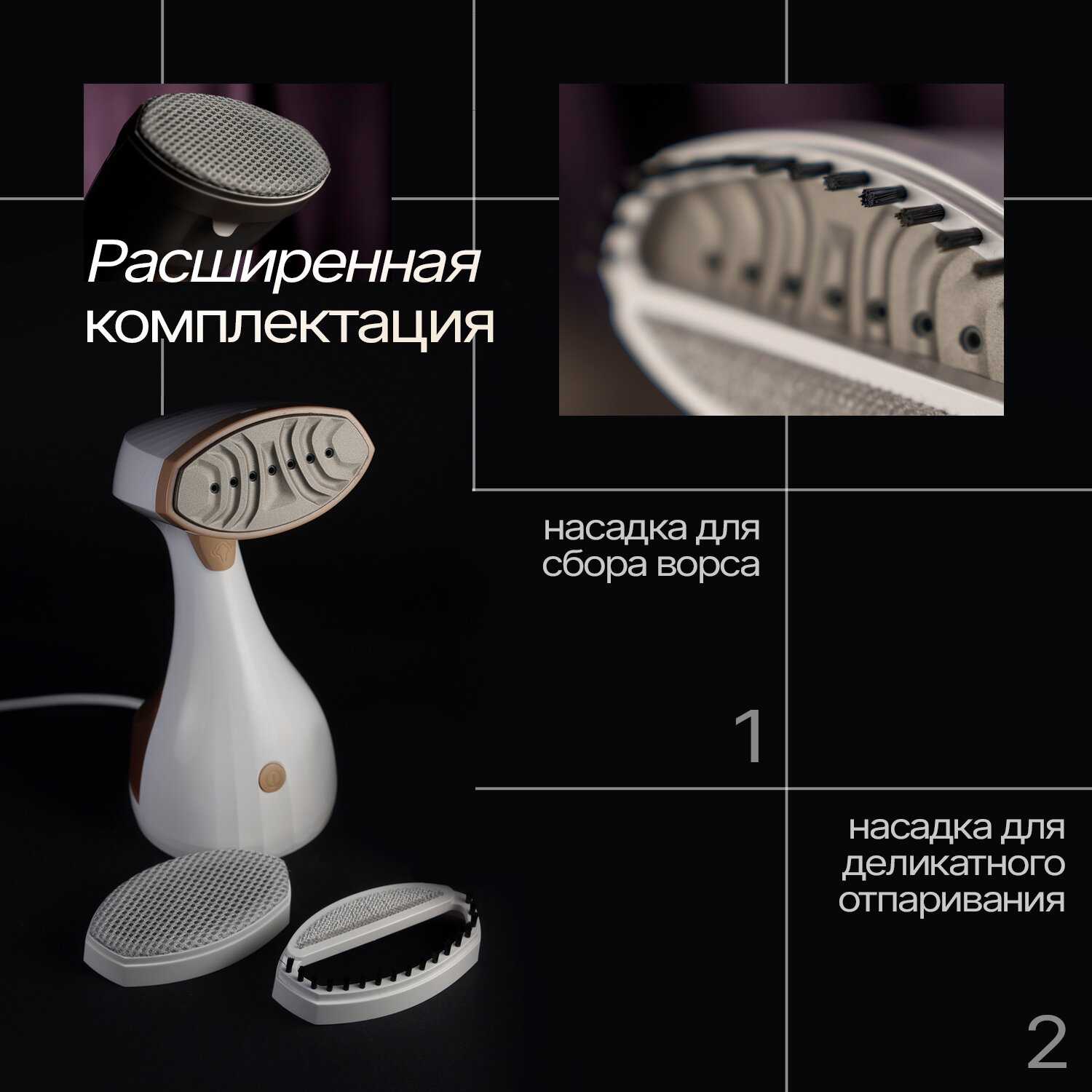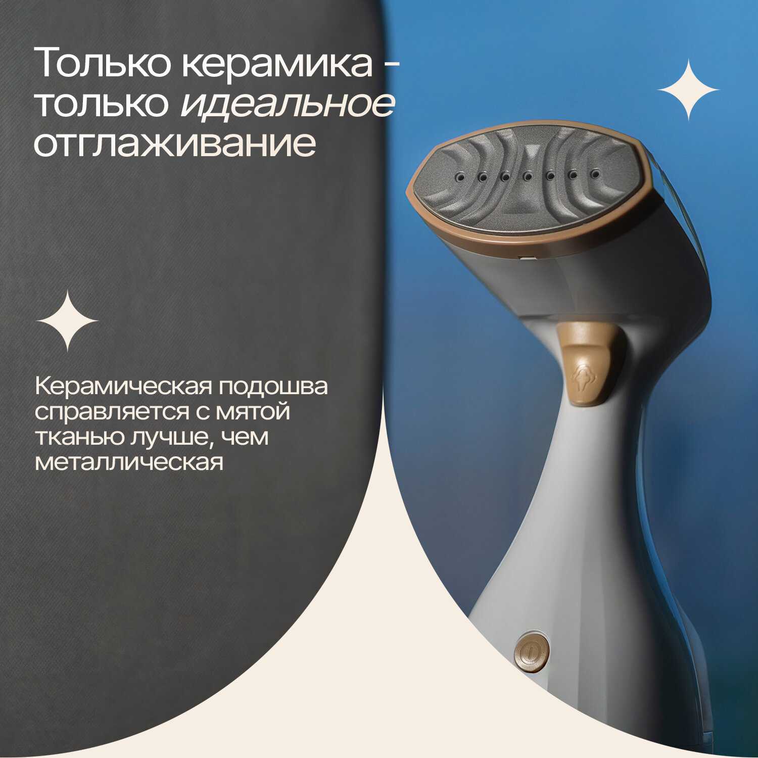 - + ✔ **Быстрота и удобство** – за пару минут убираю складки даже с самых капризных тканей (шелк, шерсть).