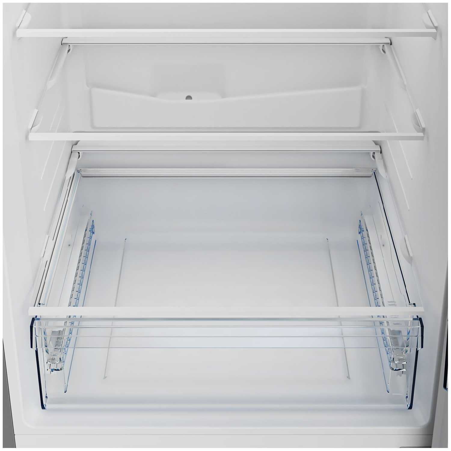 - 4 стеклянные полки и 3 боковых отделения в холодильном отсеке плюс 3 глубоких ящика в морозилке позволяют рационально сортировать продукты разного размера.