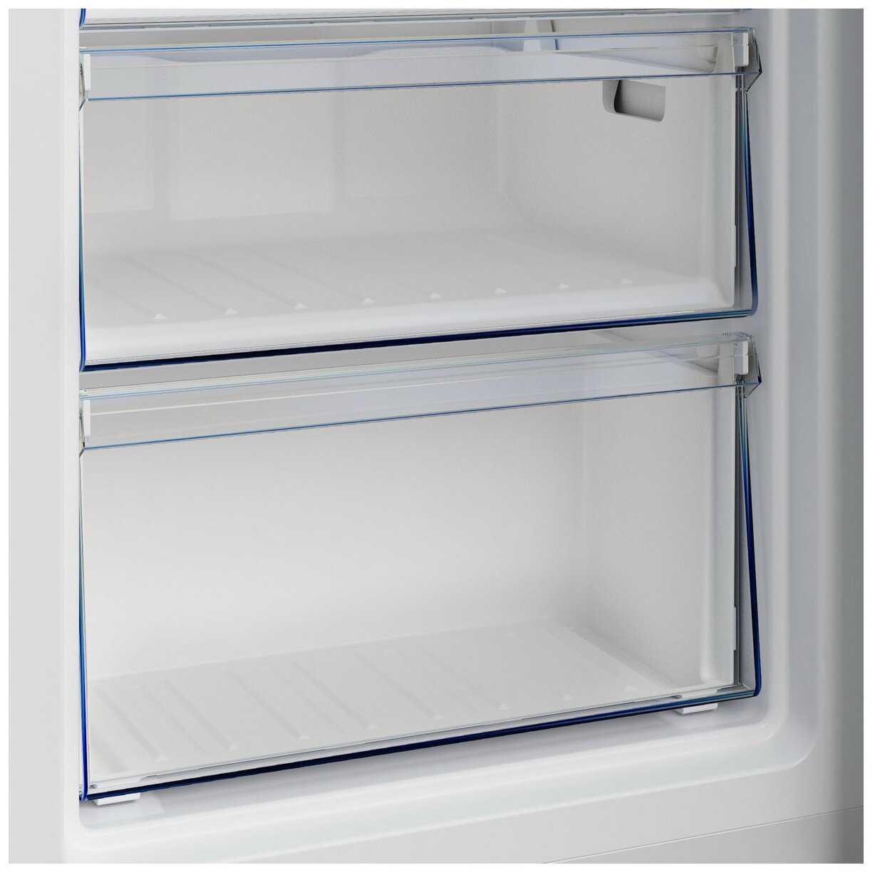 - Прозрачные ящики с усиленными направляющими облегчают поиск продуктов без открытия всех отделений.