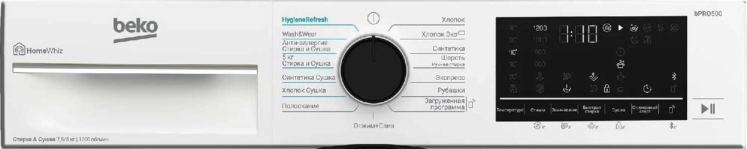 Общая эффективность стирки: Абсолютное большинство пользователей отмечают высокое качество стирки машины Beko. Вещи после цикла становятся чистыми, при этом многие режимы, включая обработку паром, эффективно справляются с различными типами загрязнений и обеспечивают гигиеническую чистоту, устраняя аллергены и бактерии. Однако один пользователь столкнулся с проблемой на комбинированном режиме "стирка и сушка" длительностью 1 час 40 минут, где машинка не справилась даже с минимальными загрязнениями, что указывает на возможную недостаточную эффективность кратковременных программ. Разнообразие программ (15 штук) позволяет подобрать оптимальный режим для любого типа ткани и степени загрязнения, что подтверждается опытом пользователей, протестировавших большинство из них. Эффективность стирки при полной загрузке в 7.5 кг также не снижается, что демонстрирует robust производительность мотора и системы подачи воды. Функция обработки паром была особо отмечена как полезная для освежения вещей без необходимости полной стирки. Некоторые пользователи прямо заявляют, что качество стирки не уступает их предыдущим, более дорогим машинам, подчеркивая excellent соотношение цены и качества именно в аспекте очистки.