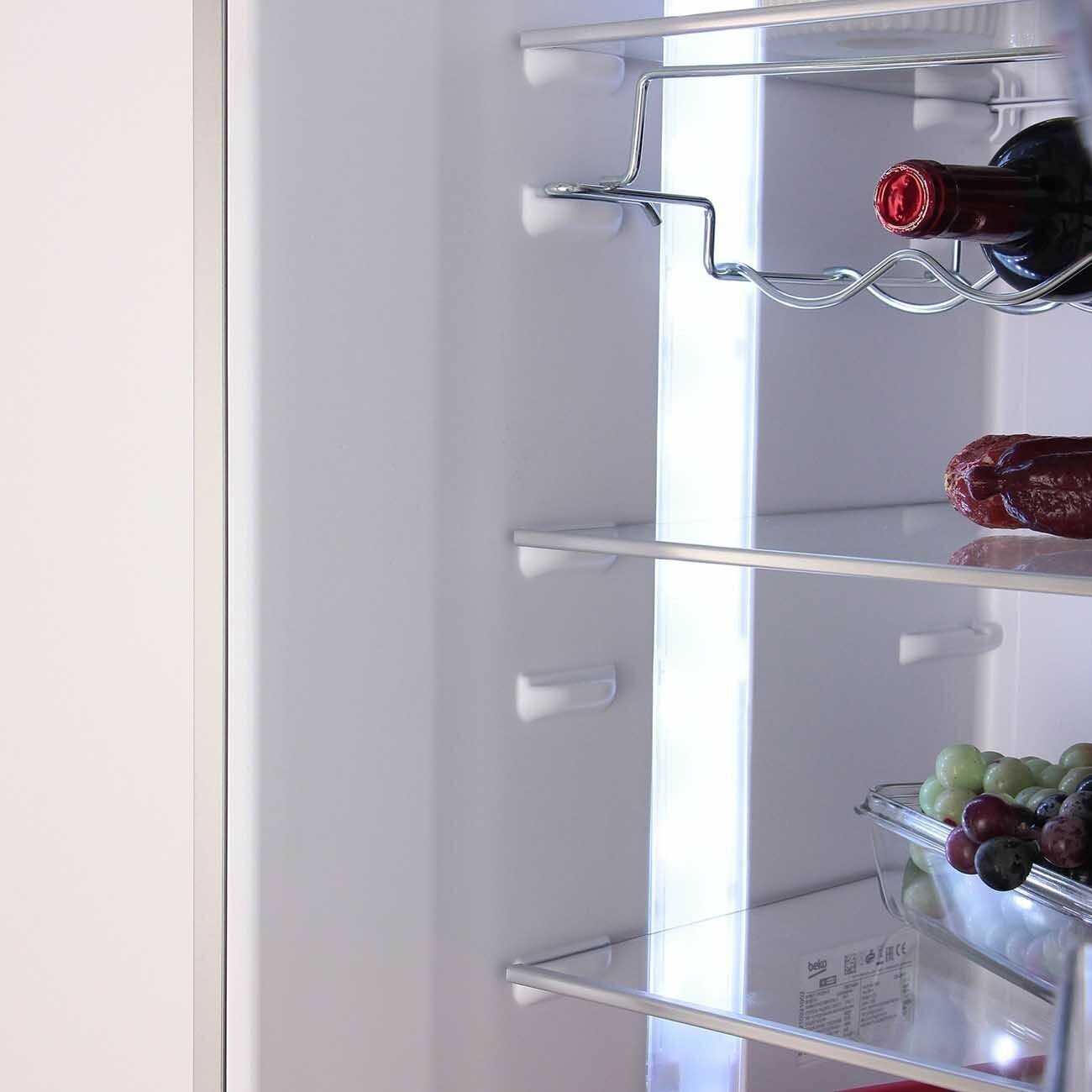 - Подсветка яркая и удобная, освещает полки равномерно.