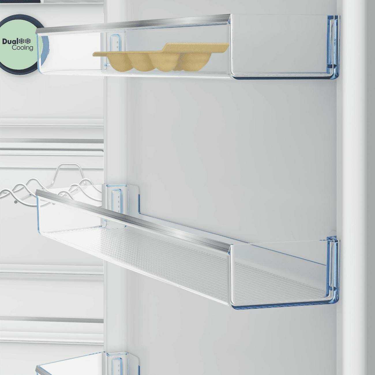 - Применение в обеих камерах усиливает надежность, исключая скопление льда в морозилке и упрощая хранение замороженных товаров.