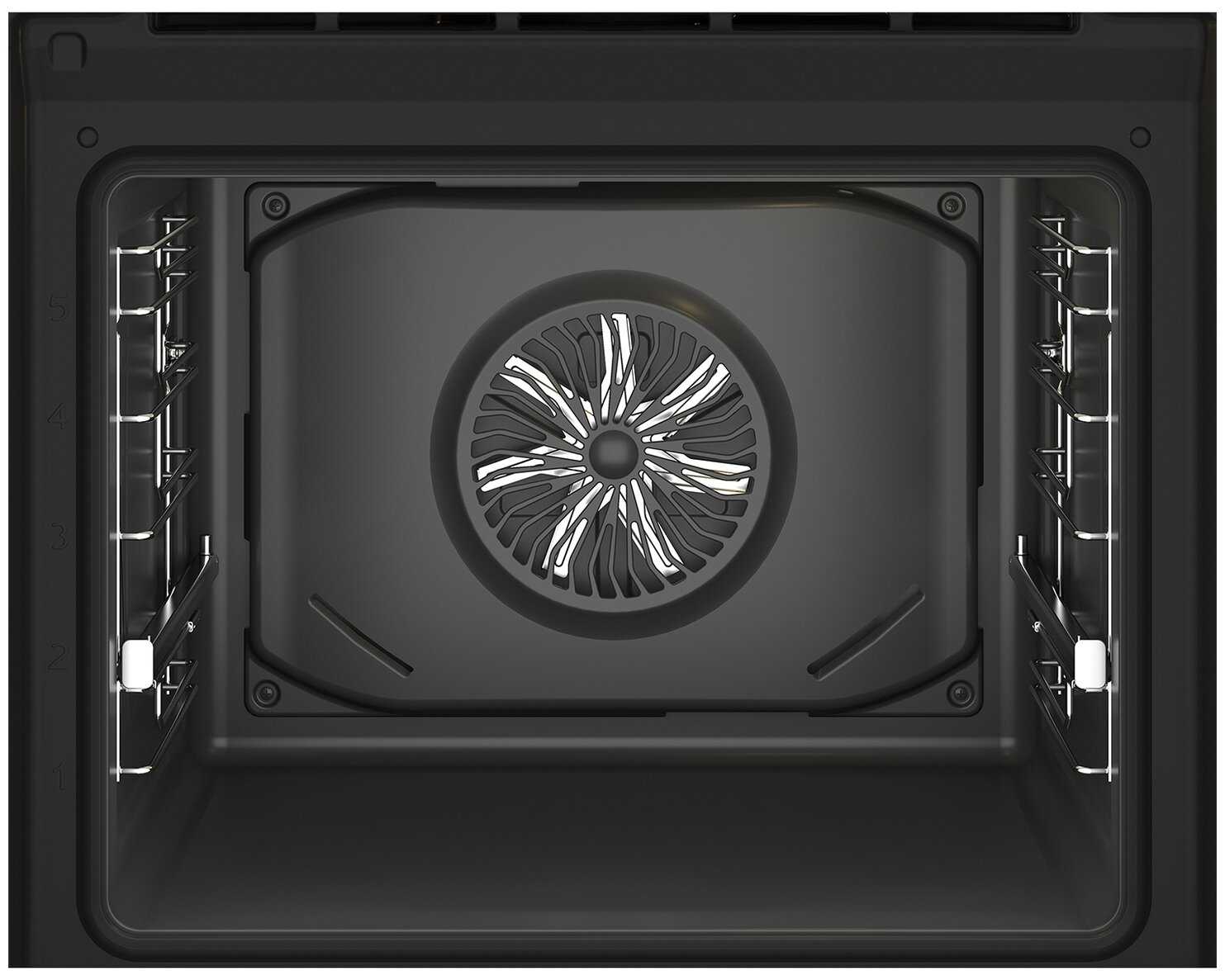 - Распределение тепла устраняет проблему подгорания снизу или сырого верха, особенно заметно при выпечке бисквитов, меренги и запекании мяса.