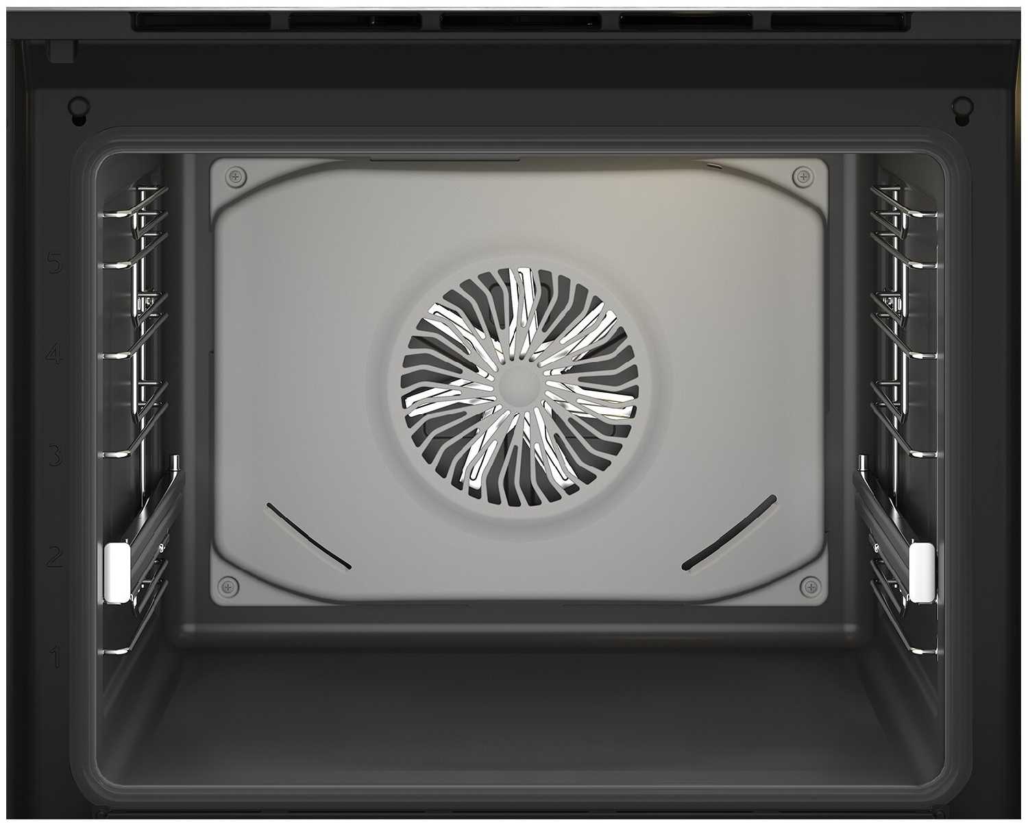 - Техническая особенность: промежуточный вентилятор между стеклами охлаждает дверцу, предотвращая выход тепла наружу.