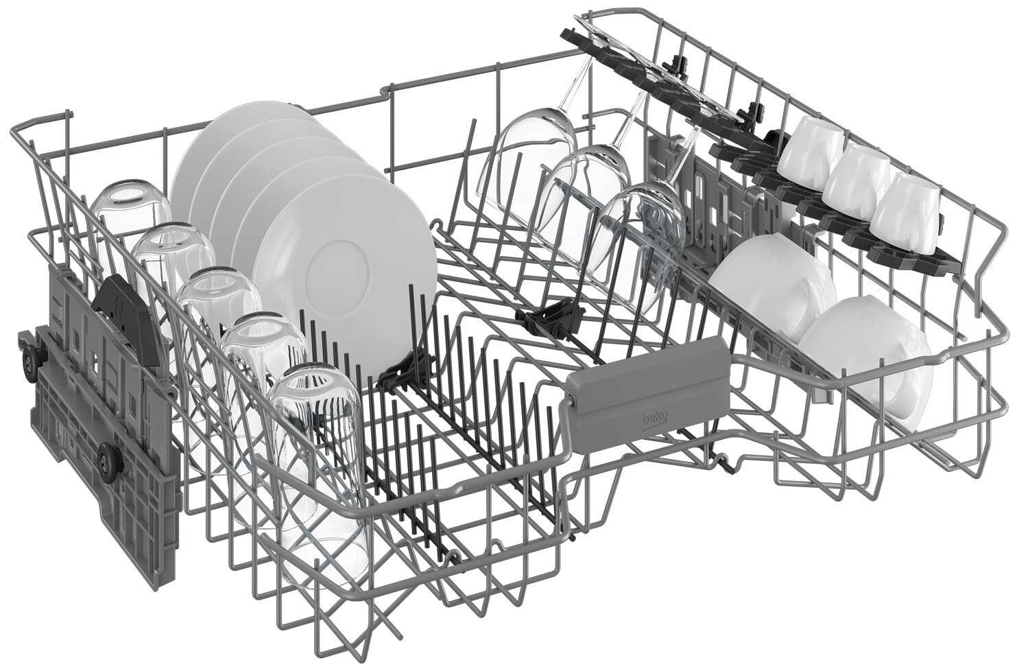 - + 3 корзины ! в в двух корзинах складываются зубчики что очень удобно. Средняя корзина регулируется по высоте. есть дополнительная корзинка для столовых приборов