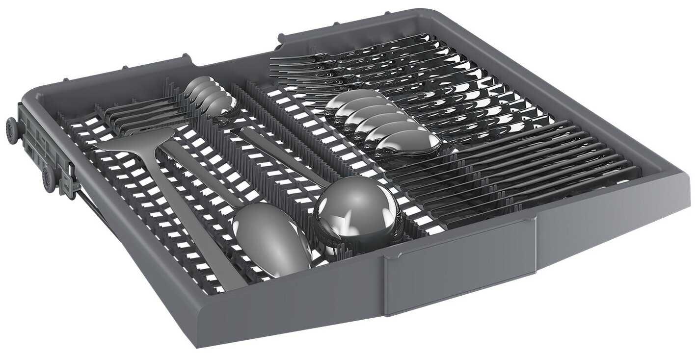 - Третья корзина для приборов и мелочей, специальные крепления для бокалов и ножей.