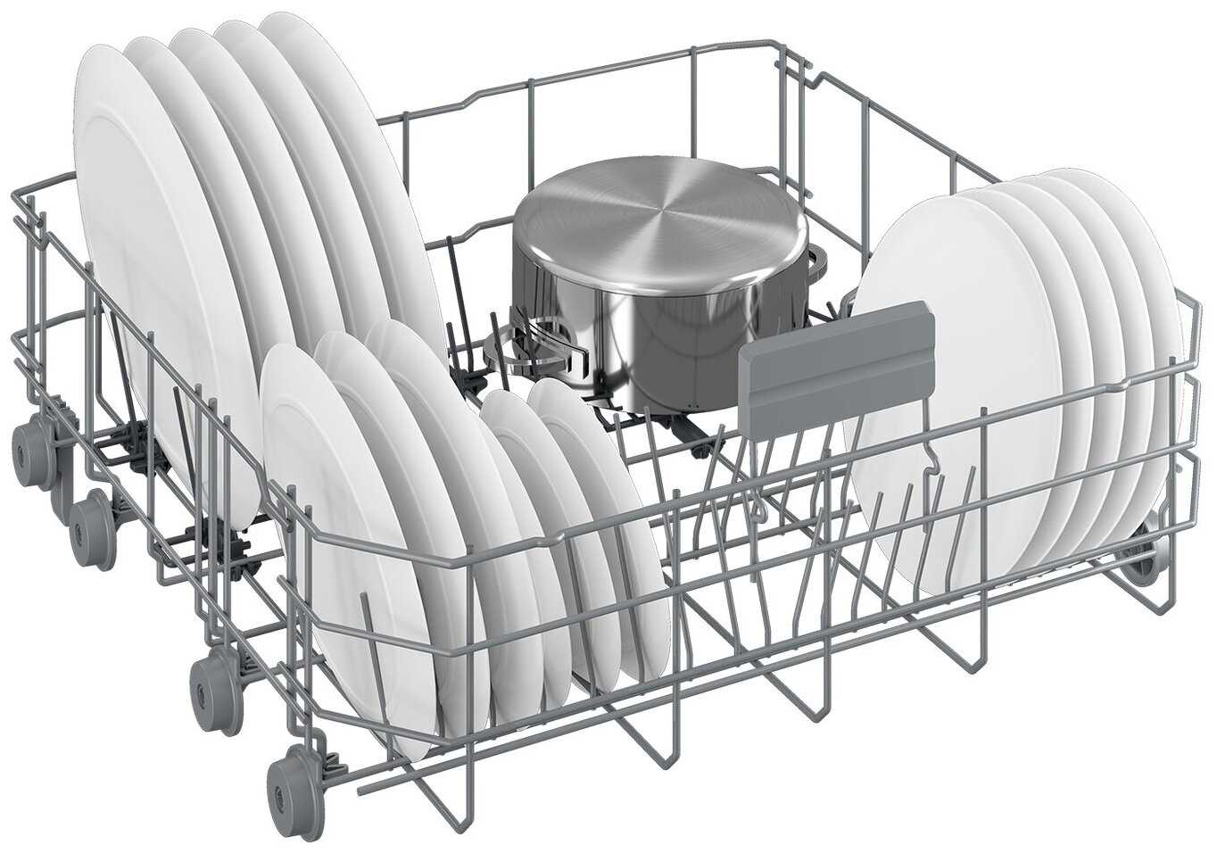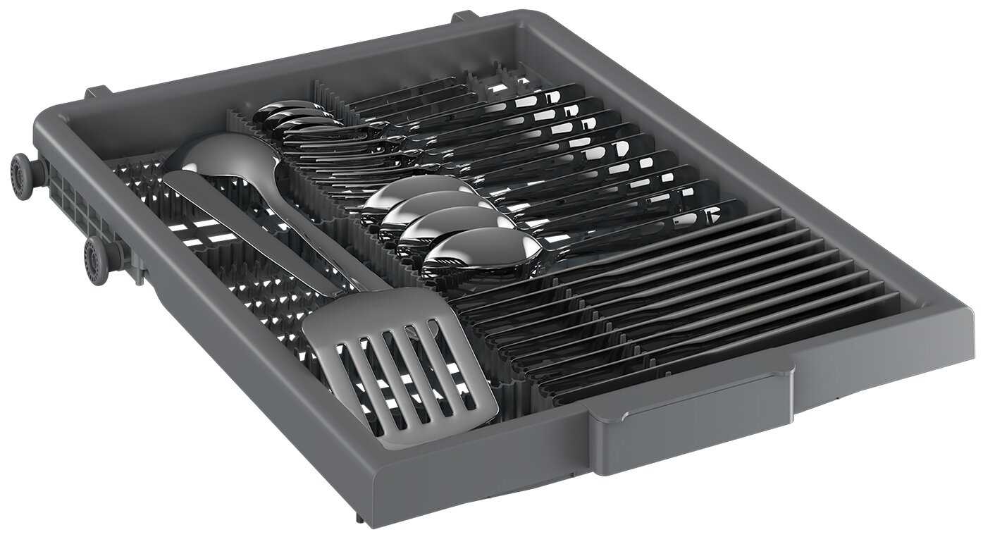 - Третий уровень загрузки и отдельный лоток для столовых приборов упрощают организацию посуды.