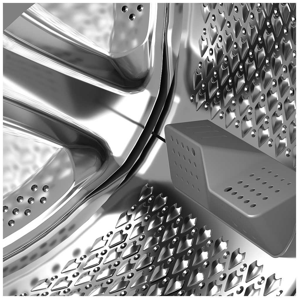- Вибрация минимальна благодаря системе балансировки барабана.