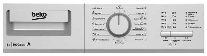 - Регулировка отжима (400-1000 об/мин), температуры, отложенный старт до 9 часов.