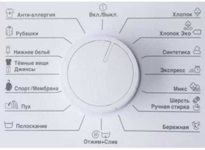 - выбор скорости отжима