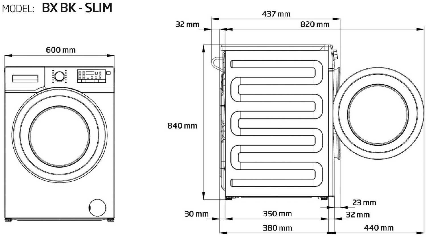 - Глубина 36.5 см позволяет установить машинку в малогабаритных помещениях, включая ниши под раковинами.