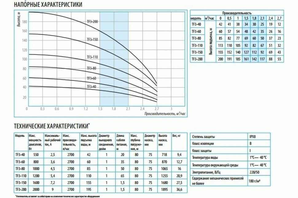 Дополнительная информация : | максимальная глубина погружения насоса: 80 м, минимальная наработка: 6000 часов, степень защиты: IPX8, класс изоляции: B, класс |