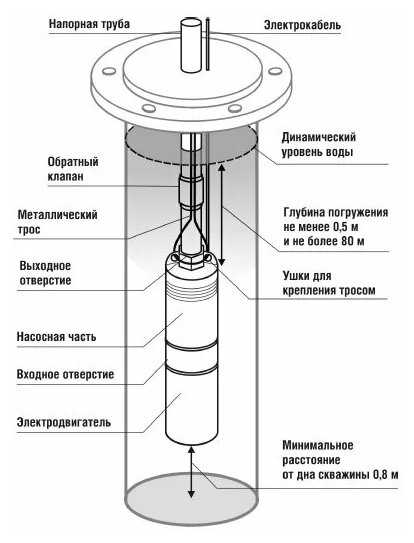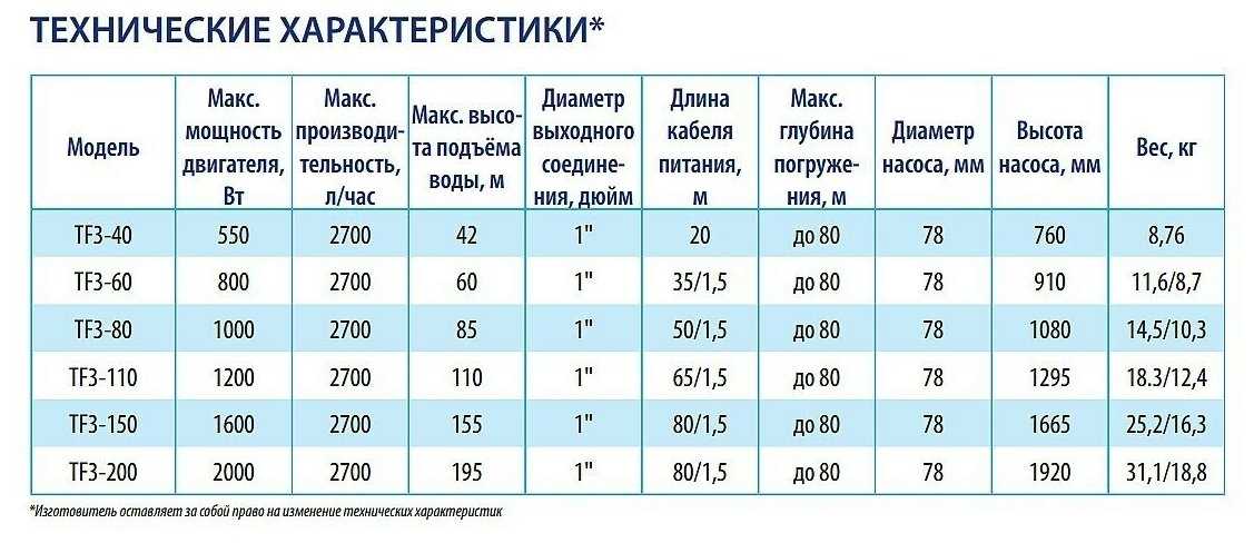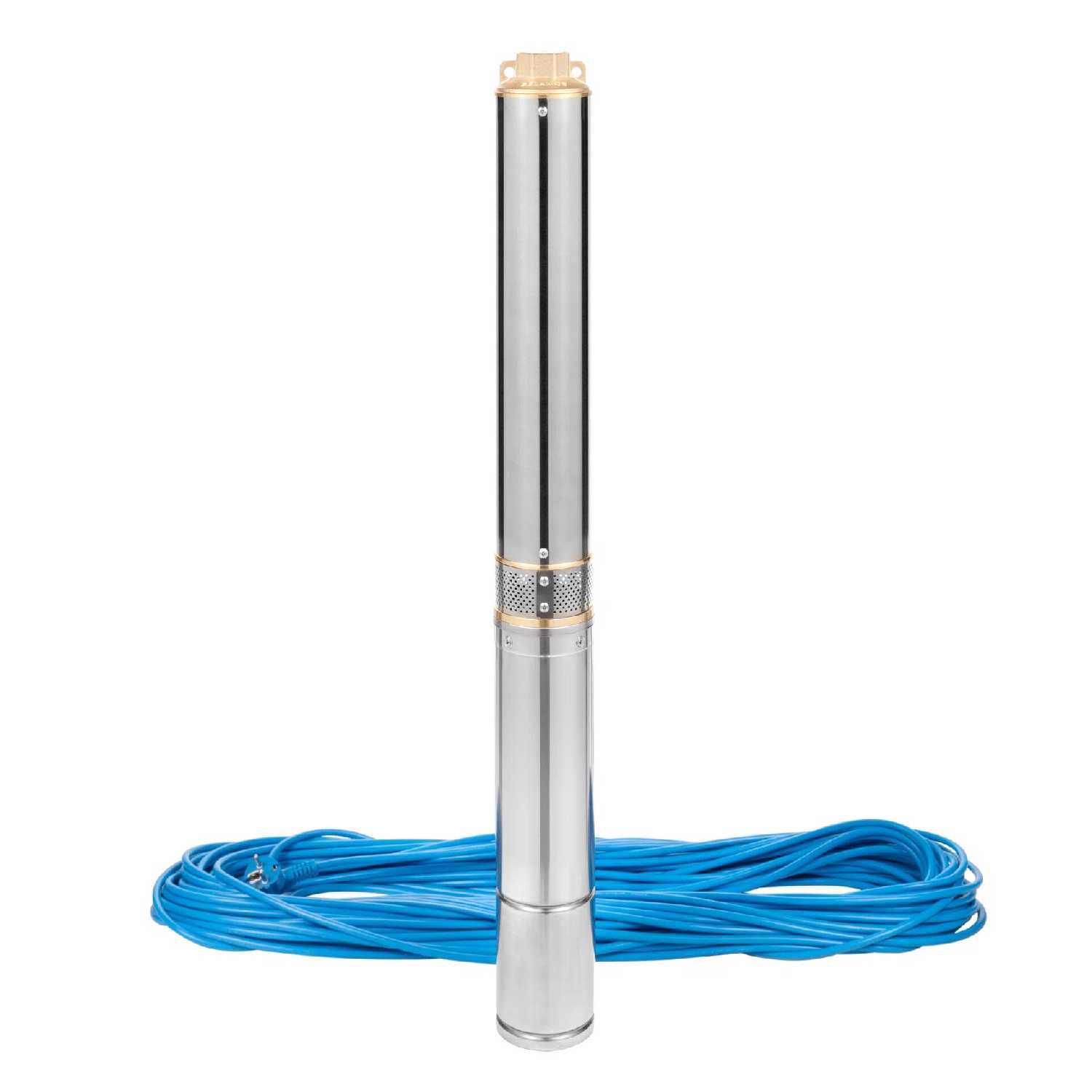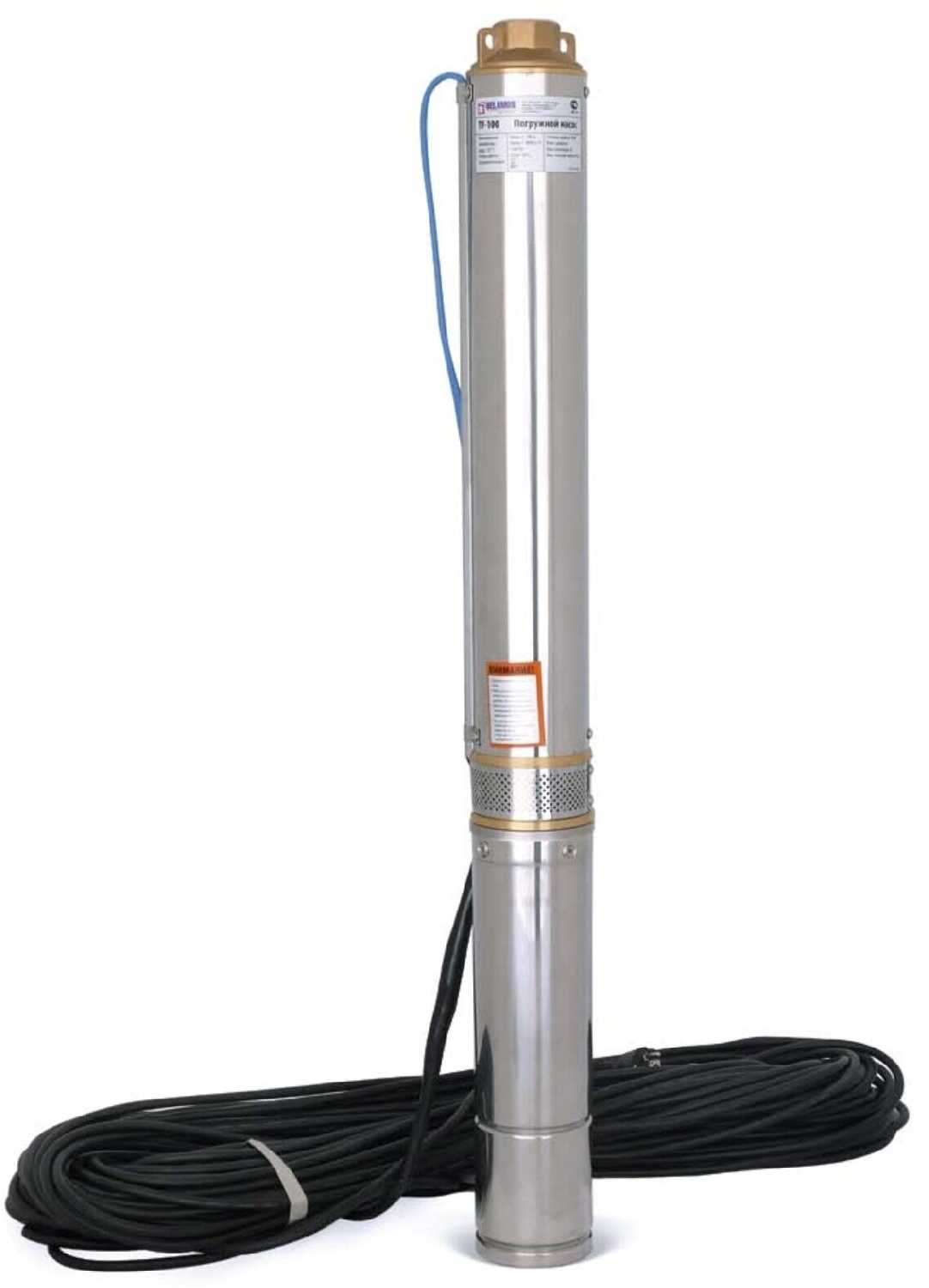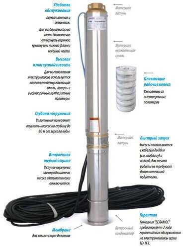 - + цена, параметры, 35 метровый трехжильный кабель в комплекте, тихо работает, напор и производительность