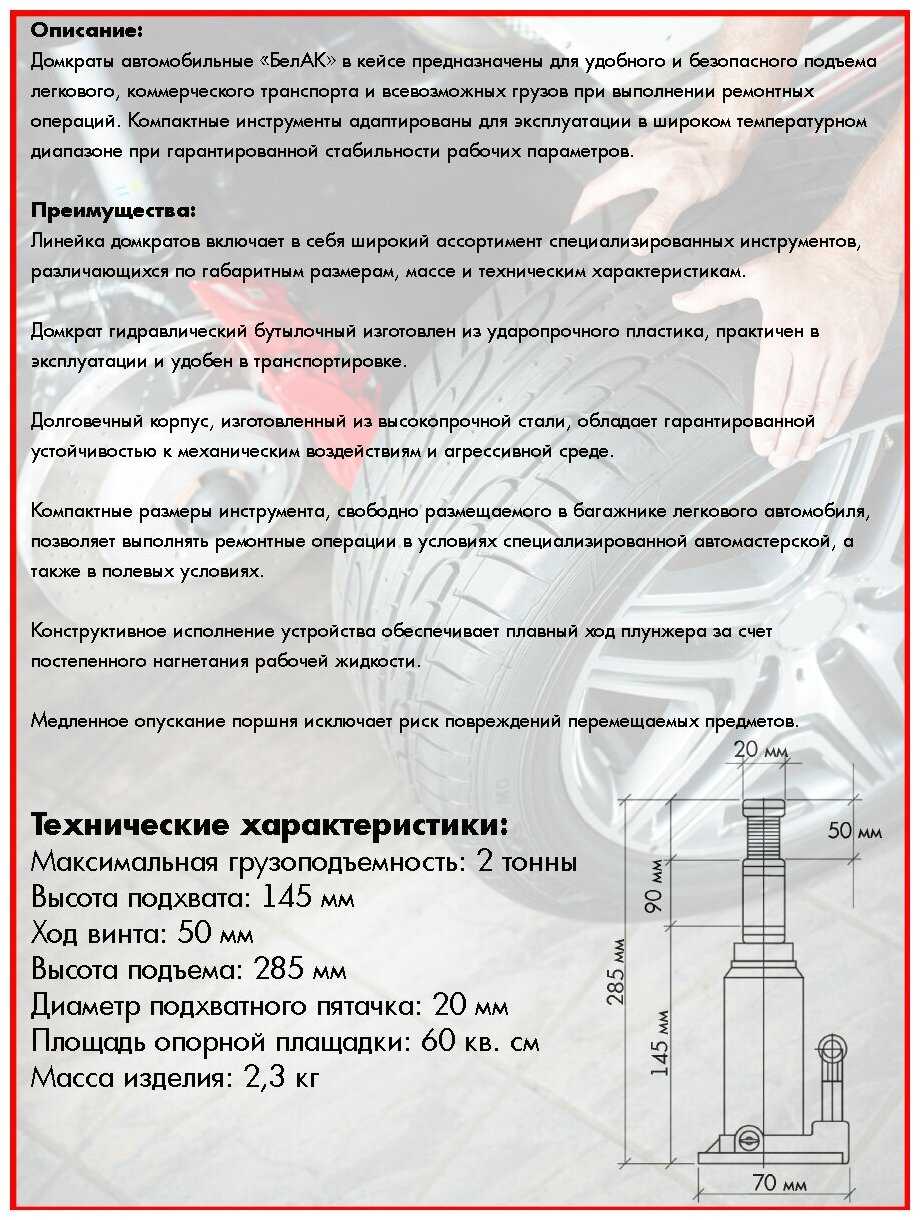 Отзывы о Домкрат бутылочный гидравлический БелАК БАК.10039
