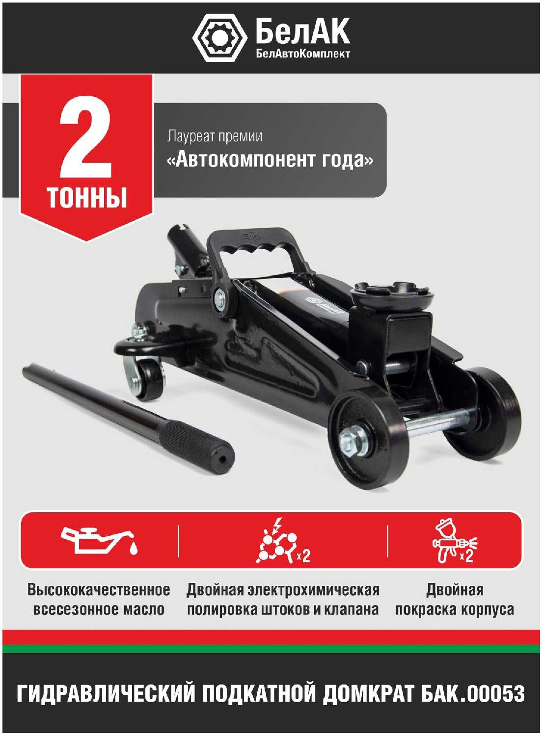 Обзор БелАвтоКомплект Домкрат подкатной гидравлический для мототехники (БАК.00053)*: