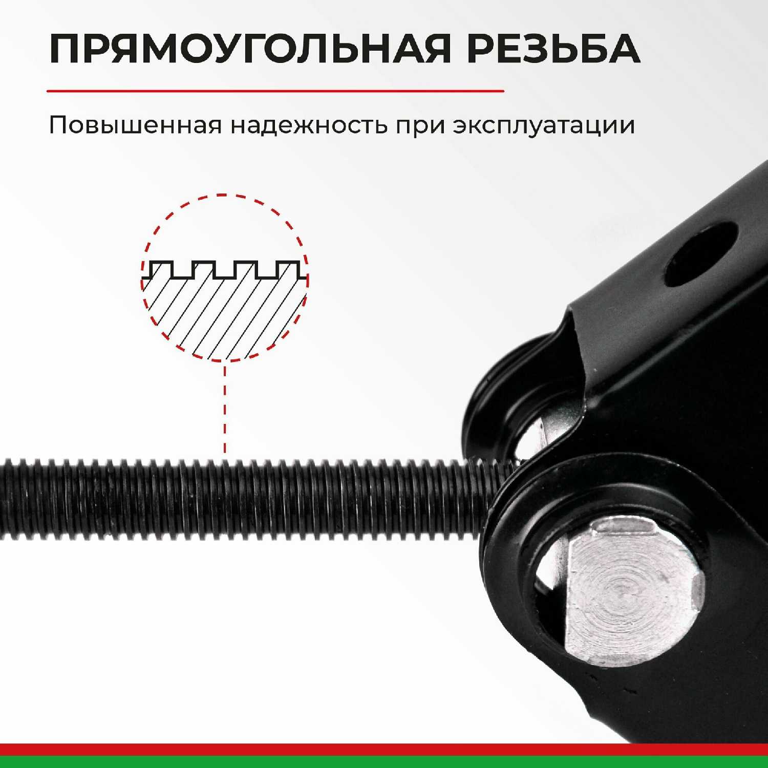 - Механизм подъема держит нагрузку без люфта, позволяя безопасно фиксировать позицию для ремонта подвески.