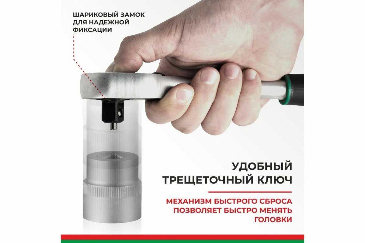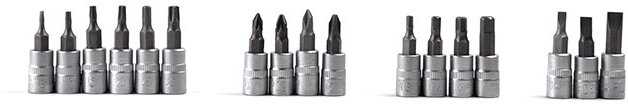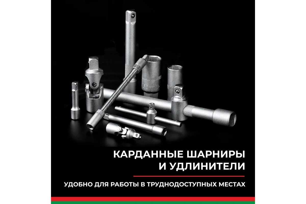 Аксессуары в комплекте : | гибкий удлинитель для бит, держатель для бит, удлинитель для головок, шарнир карданный для головок |