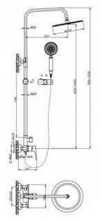 | Особенности : | держатель душевой лейки, поворотный излив, регулируемый верхний душ |