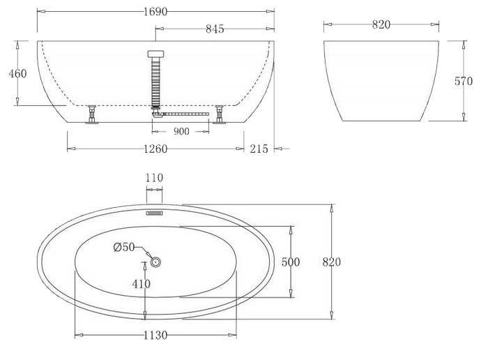 | Дополнительная информация : | Расположение перелива: Сливное отверстие посередине дна ванны |