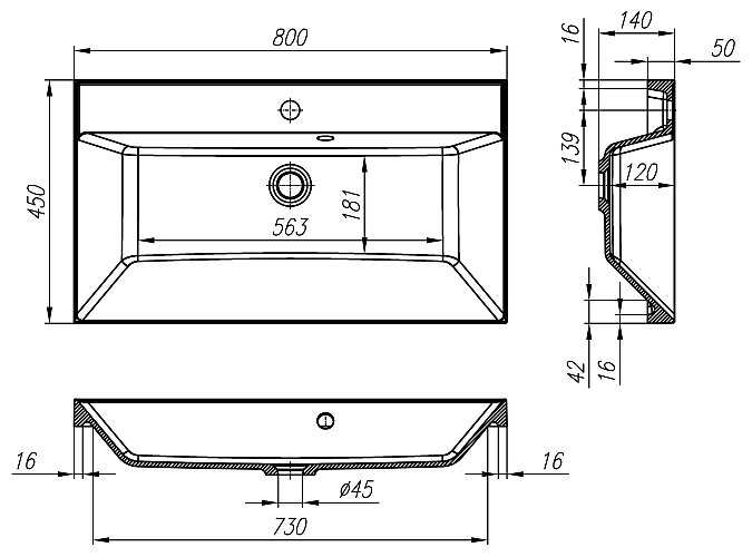 | Диаметр сливного отверстия : | 45 мм |