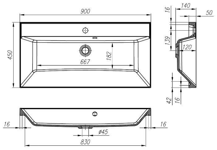 | Расположение размеченного отверстия под смеситель : | в центре |