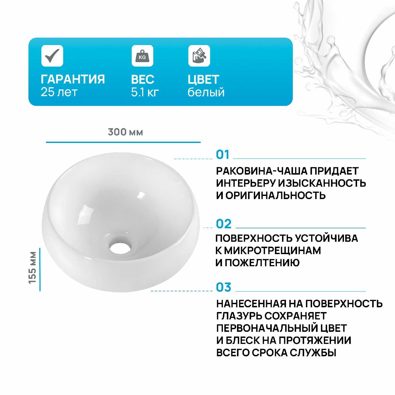 Дополнительная информация : | Комплектация | Раковина - 1 шт. Инструкция - 1 шт., Возможное основание под раковину | столешница, Гарантия | 25 лет, Расстояние от смесителя до слива см | 19, Страна | Италия, Ширина см | 30 |
