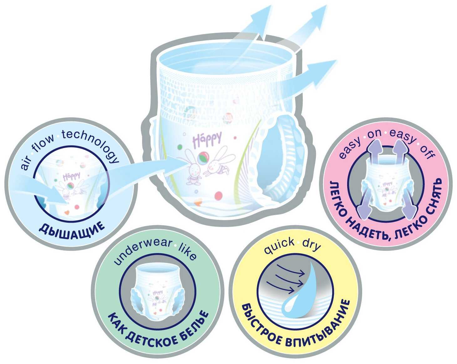 - Яркие рисунки (зайчики, шары, леденцы) нравятся детям, ненавязчивые и милые, не просвечивают через одежду в большинстве случаев.