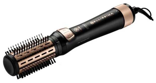 Удобная фен-щетка. Она совмещает в себе функции и фена и специальной расчески. Две насадки немного отличаются друг от друга своим диаметром. Сама щетка может вращаться в двух направлениях. В основном я делаю именно локоны, но консультант говорил, что я могу также попробовать выпрямить волосы. Мощность работы составляет 1000 Вт. Есть функция холодного воздуха, и ещё предусмотрена ионизация. Сам корпус пластиковый, и фен весит около 600 грамм. Он работает хорошо. По факту использую примерно 2 раза в неделю, и всегда наношу термозащитные средства. Само управление механическое, есть специальные кнопки. Визуально фен-щетка тоже выглядит весьма красиво.