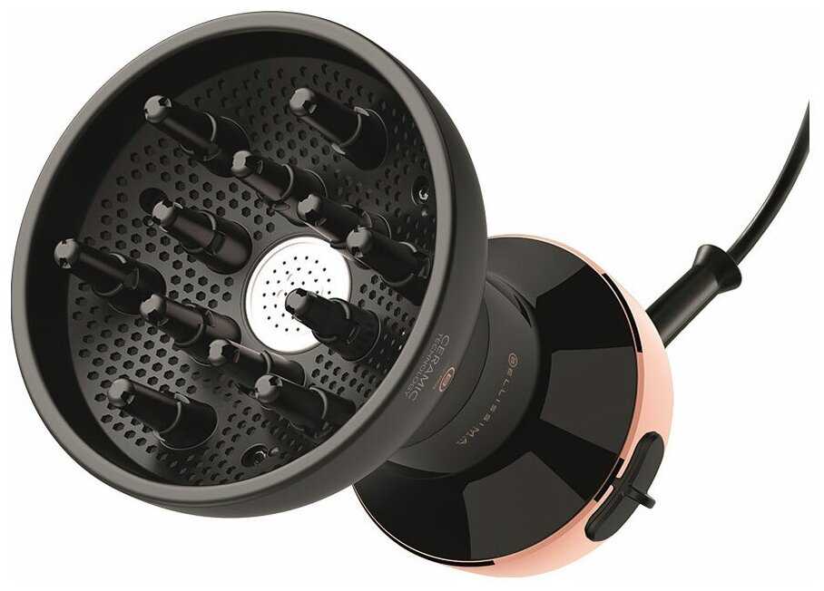 - Диффузор формирует упругие локоны на кудрявых волосах без "пушистости".