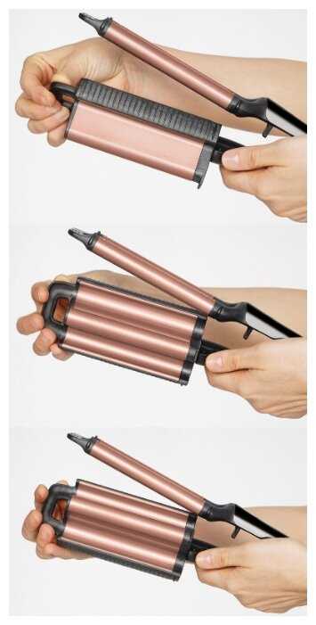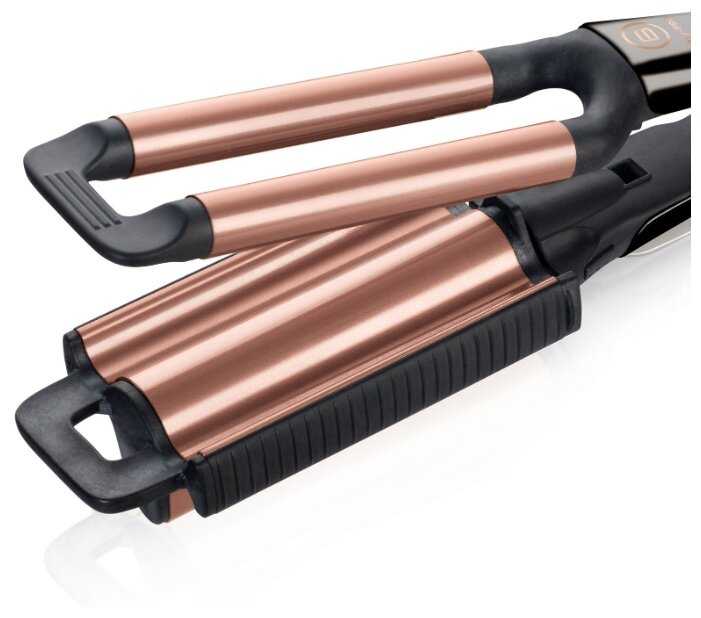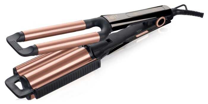 | Дополнительная информация : | реверсивные щипцы с двойным профилем для укладки волос волнами в двух разных стилях, размер волнистой пластины 62x110 мм, система блокировки пластин |