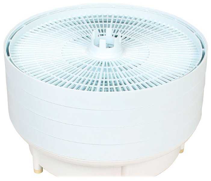 Отличная сушилка, взял себе за 3500 руб. после приобретения родителям Ветерка-2 по той-же цене. По сравнению с Ветерком имеет почти в 2 раза меньшие размеры, менее шумная но и менее вместительная. Есть боковые отверстия для подачи воздуха и центральное отверстие в поддонах для равномерной сушки продукта, по этому без проблем заполняю под завязку плотно сетчатые поддоны, просто наваливая нарезку, не раскладываю аккуратно ломтики, сушит равномерно. На нижних поддонах конечно быстрее, законы физики по теплоотдаче никто не отменял. В комплекте 1 поддон для пастилы. Докупил отдельно ещё 3 поддона-сетки. Сушилка с 8 поддонами справляется не ура. Загружаю ведро яблок, время сушки такого объёма 12-14 часов . Грибы примерно также.