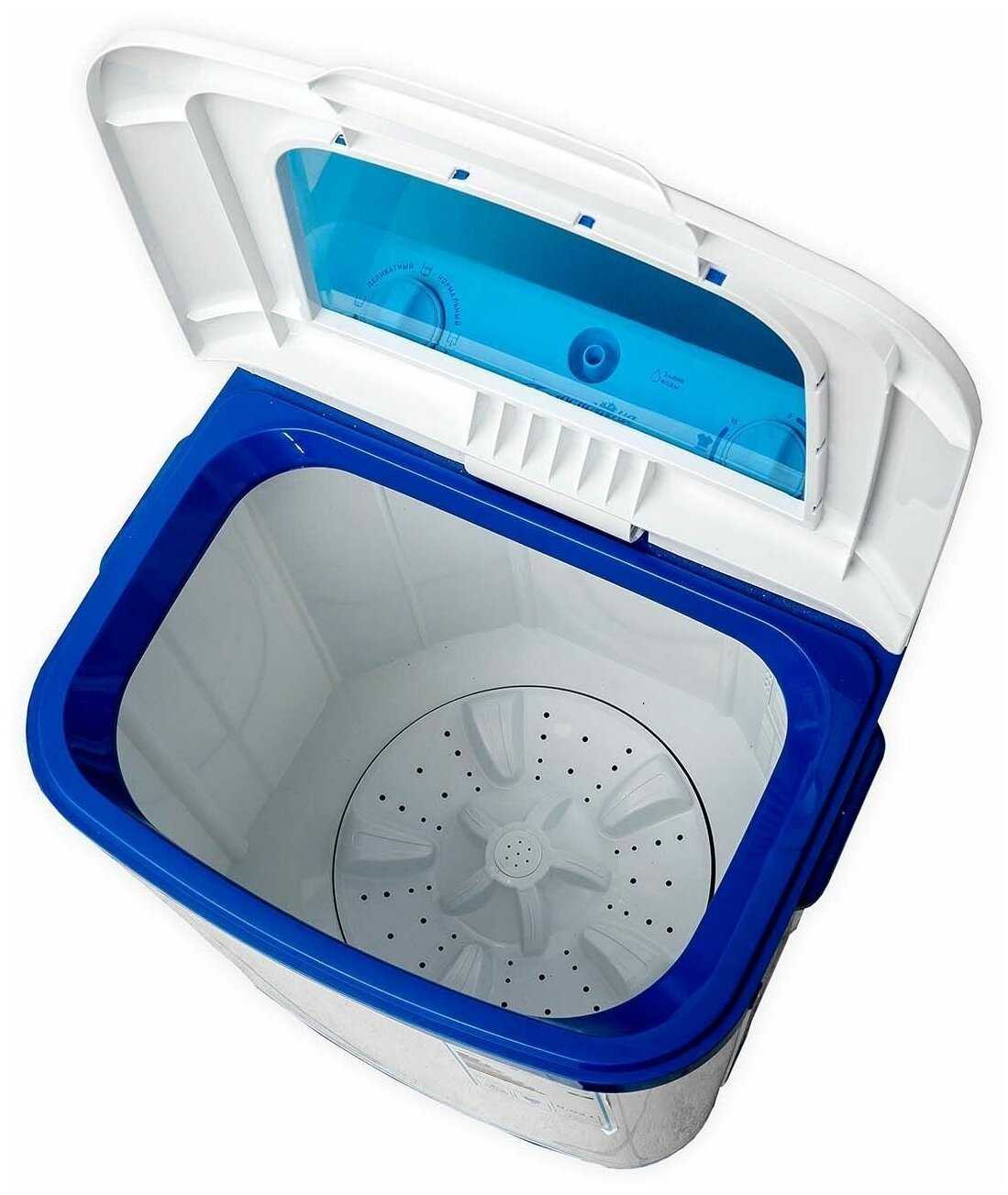 - + Большой глубокий отсек для стирки. Два режима стирки. Компактная. Простая в управлении. В инструкции представлена полная информация по режимам, объему одежды, порошку и прочее. Не шумная.