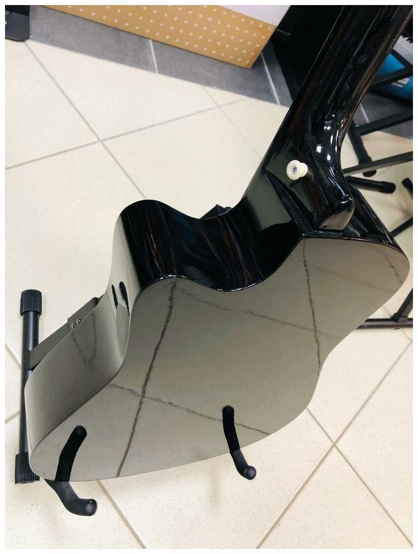 - Сбалансированный центр тяжести предотвращает сползание гитары с колена.