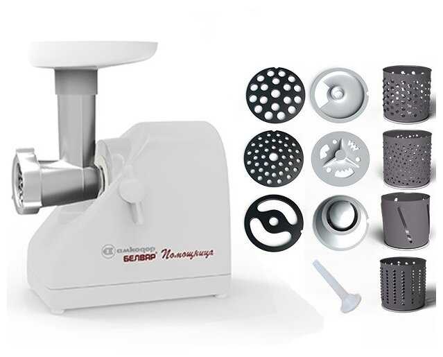 Звук работы двигателя приемлемый. На этом плюсы закончились. Нож и сетку мясорубки подгонял долго и настойчиво. Спасибо закалке советских времен. Барабаны для шинкования изначально тупые. Заточка режущих граней не помогла, поскольку металл ТОНКИЙ и не держит заточку. В придачу к этому во время работы барабан внутри насадки-шинковки прилично люфтит. После истирания двух картофелин стало понятно, что от этой белорусской Помощницы больше мУки, чем помощи.