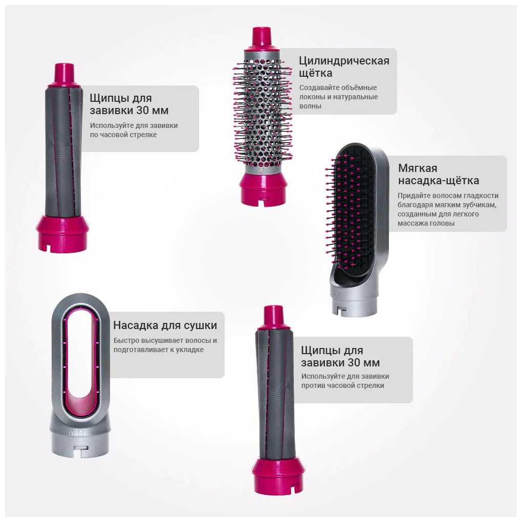 - Пользователи отмечают, что насадки для выпрямления, завивки (30 мм), сушки и создания объёма работают эффективно. Например, крупные локоны держатся до суток даже на непослушных волосах.