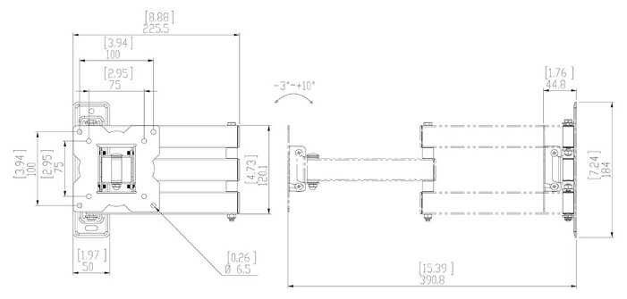 | Дополнительная информация : | расстояние от стены 45-390 мм, угол наклона -3°+10°, угол поворота ±90° |
