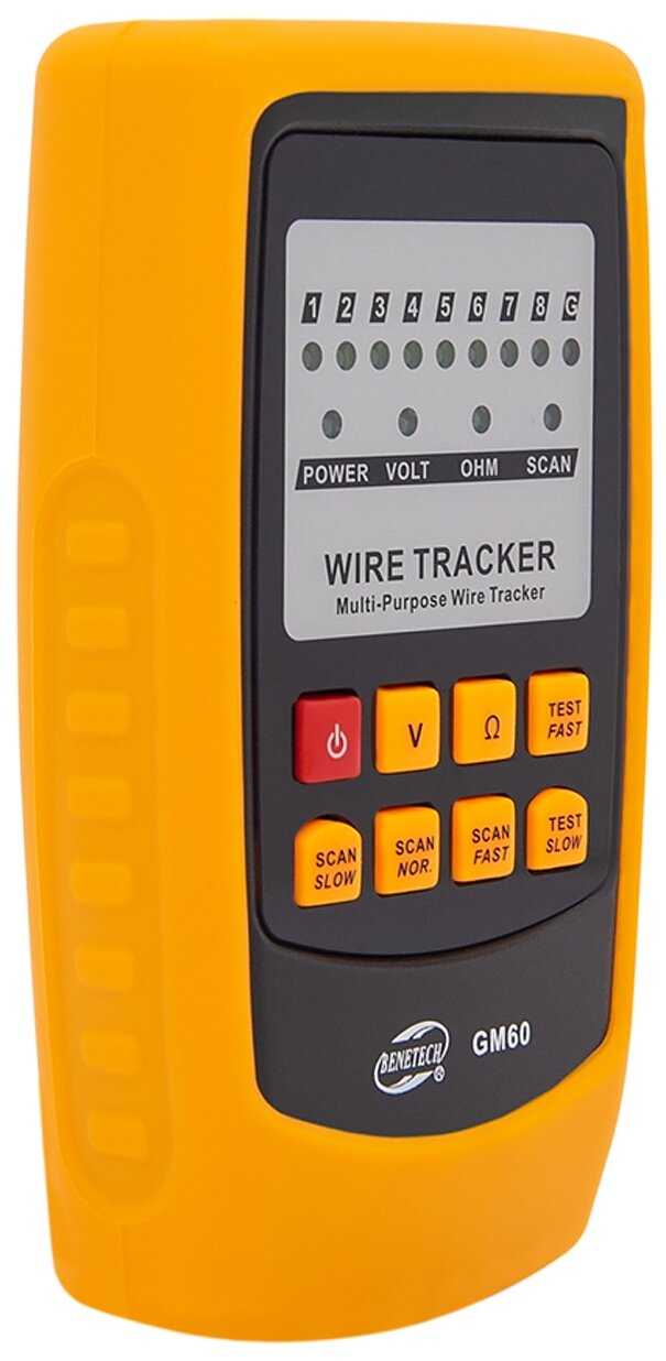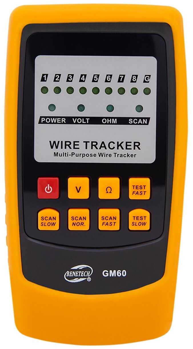 - Тестер эффективно идентифицирует нужный кабель даже в плотных пучках из сотен проводов, включая скрытые под штукатуркой или в кабель-каналах.