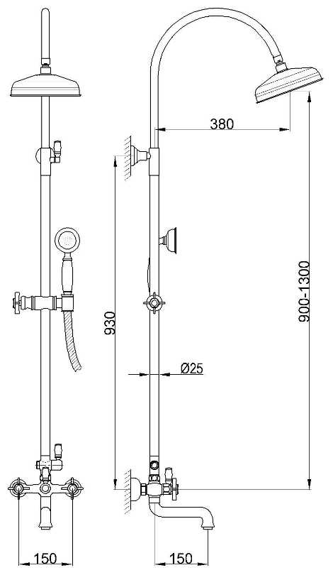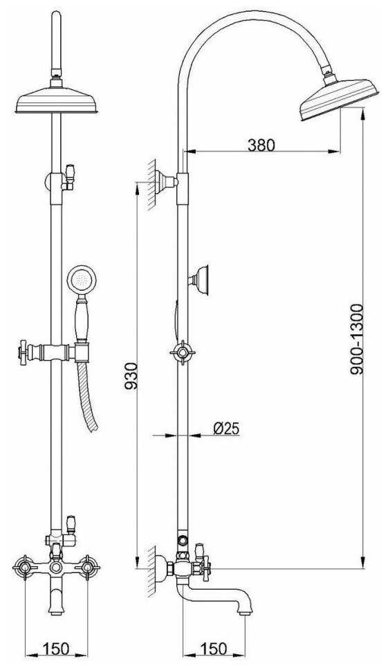 | Комплектация : | верхний душ, держатель лейки, душевая штанга, смеситель, шланг |