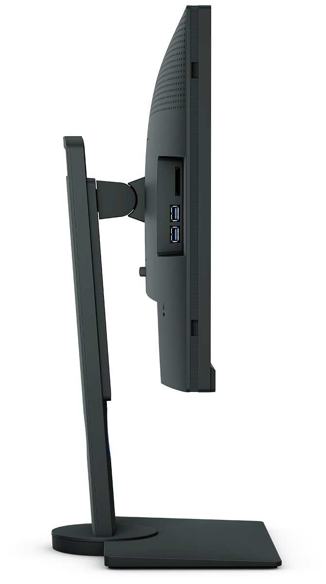 - Регулируемая подставка (высота, наклон, поворот, портретный режим) адаптирует монитор под индивидуальные рабочие условия.