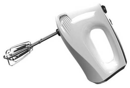Отличный недорогой миксер, в комплекте не только стандартные венчики, но и насадки-крюки, которыми тесто готовят. Сам корпус пластиковый и очень легкий, поэтому даже от длительного смешивания рука не болит. Тумблер переключения скоростей прямо под пальцем располагается, да и в целом ручка миксера удобна, она легко обхватывается ладонью и не выскальзывает.