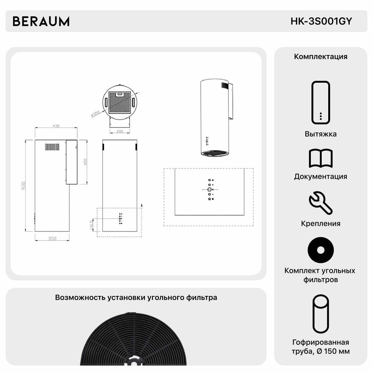 | Диаметр патрубка воздуховода : | 150 мм |