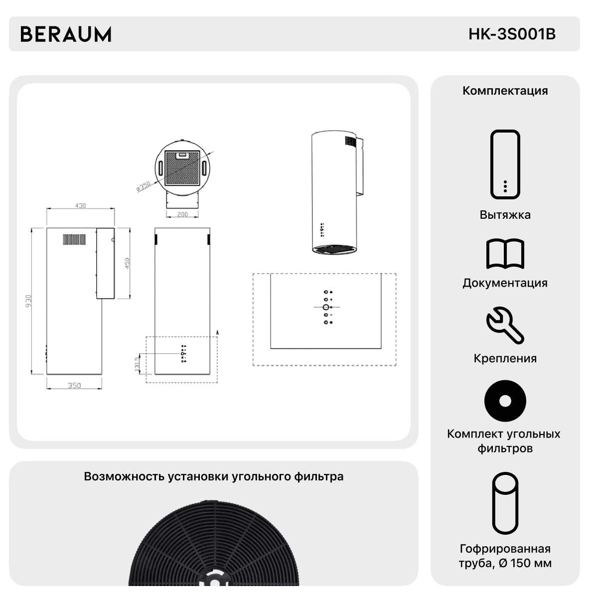 - Два фильтра упрощают уход, угольные фильтры позволяют использовать без воздуховода.