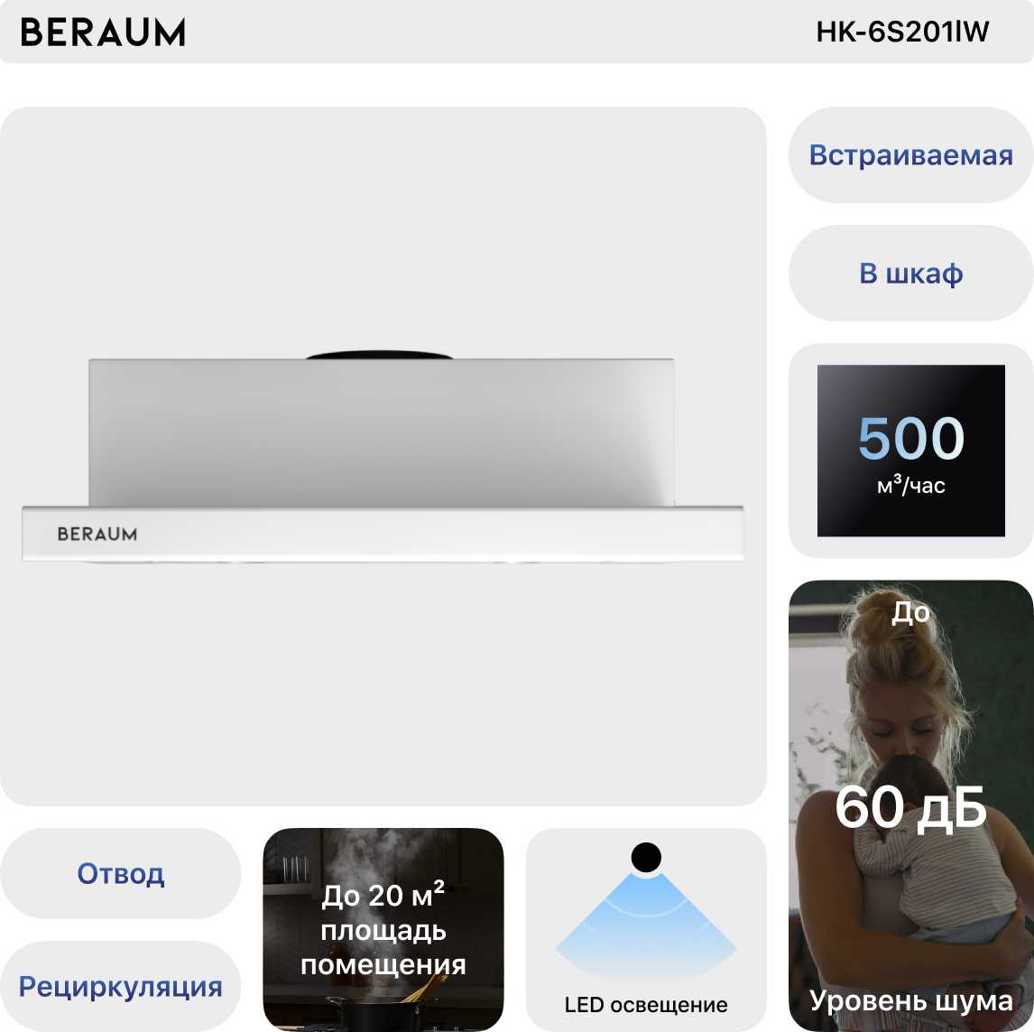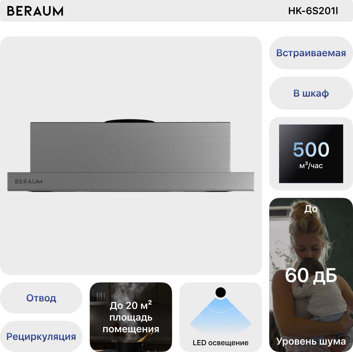 Отзывы о Вытяжка встраиваемая Beraum HK-6S201